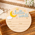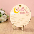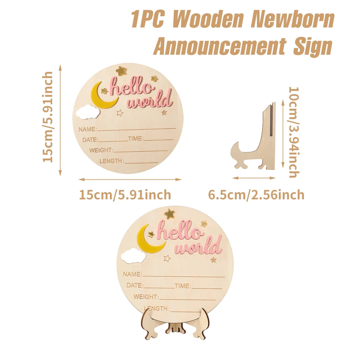 1pc Newborn Announcement Sign Hello World Newborn Welcome Sign New Baby Announcement Wooden Plaque Sign Newborn Welcome Card