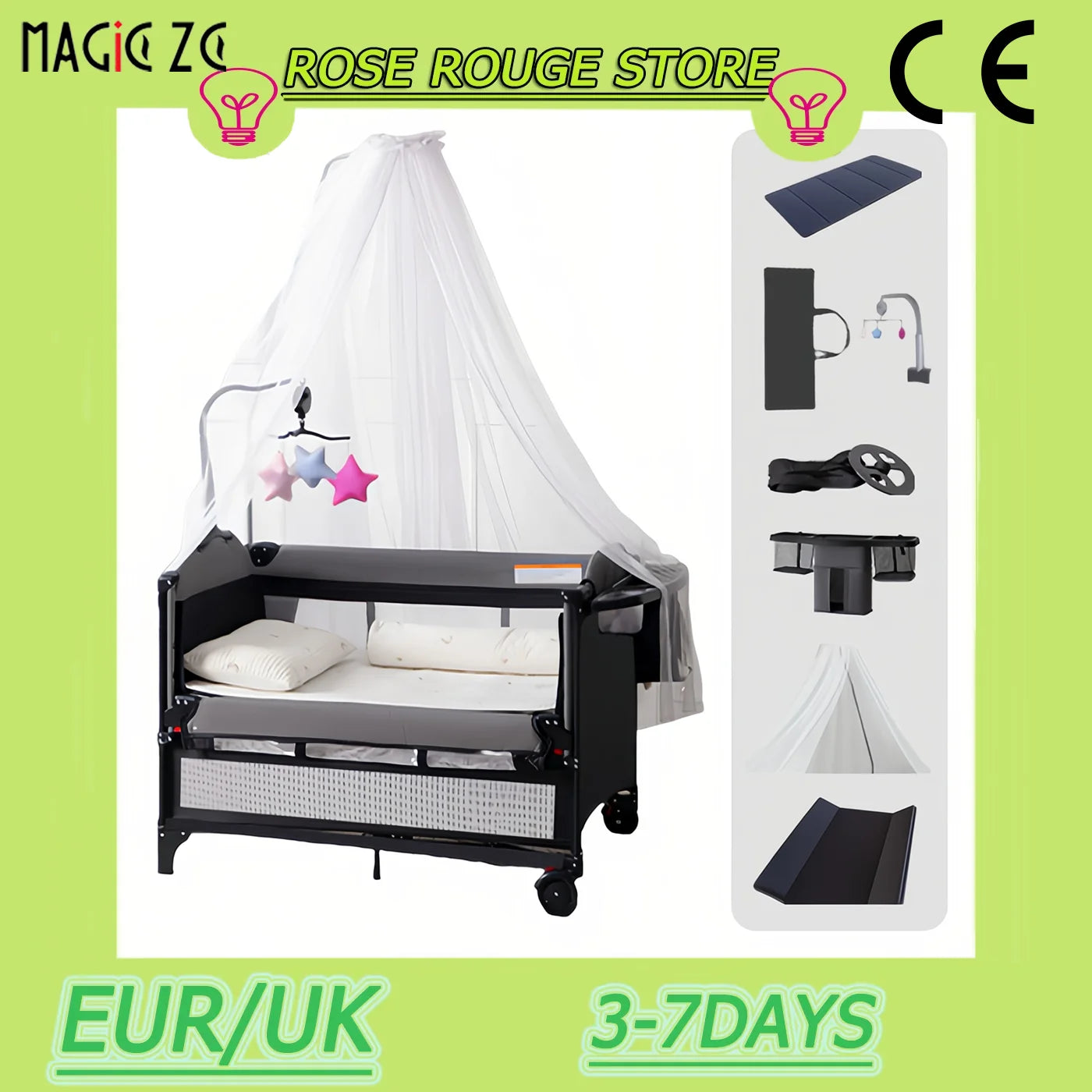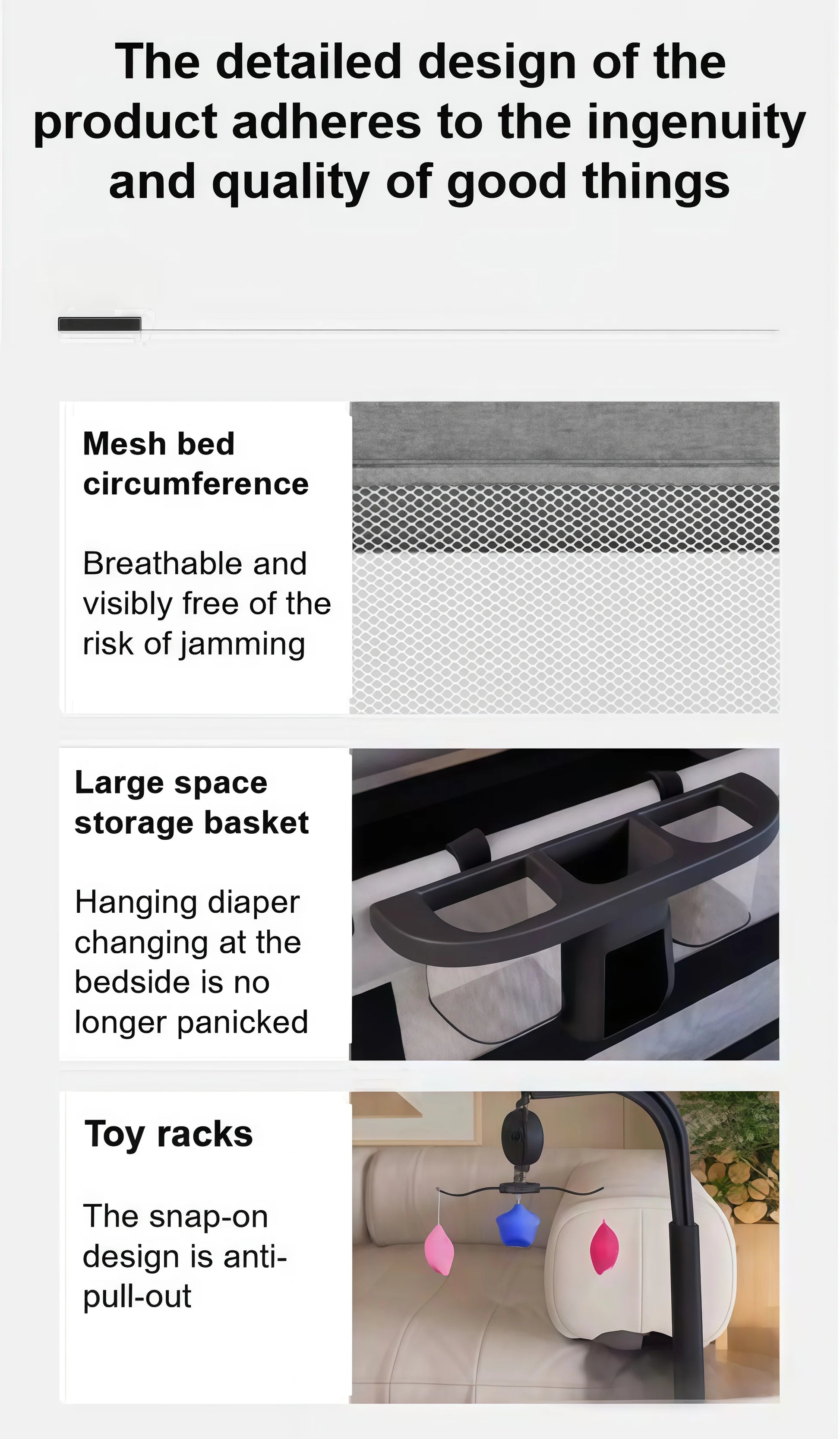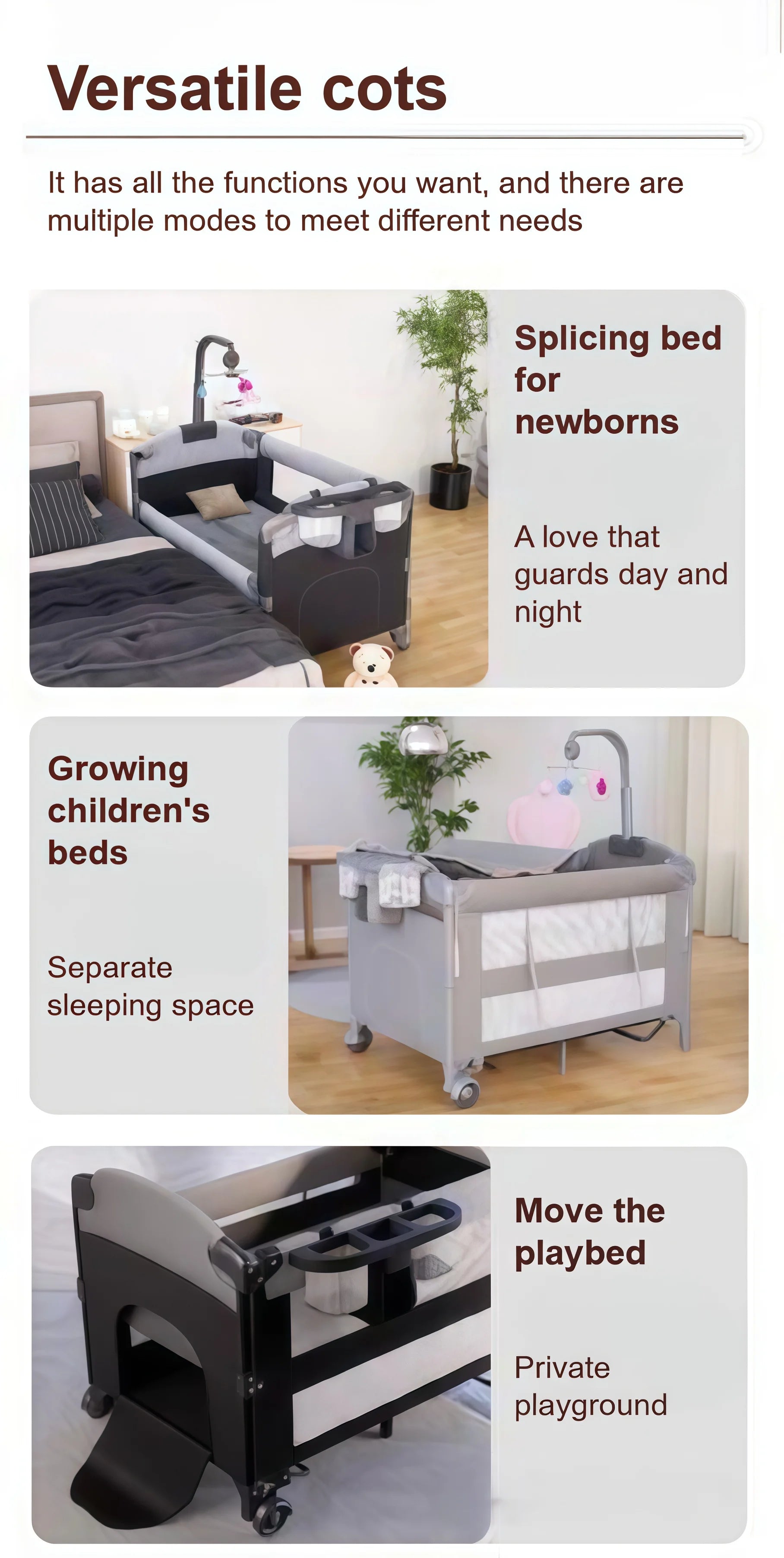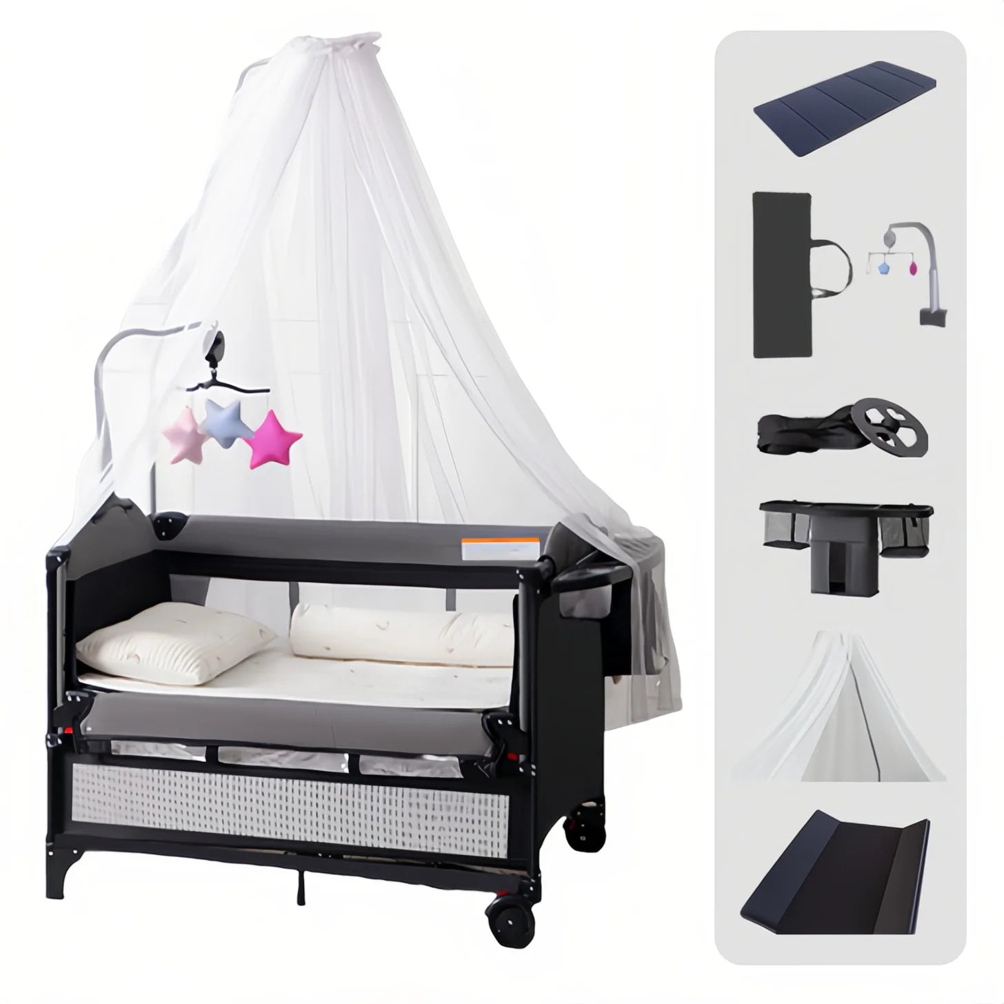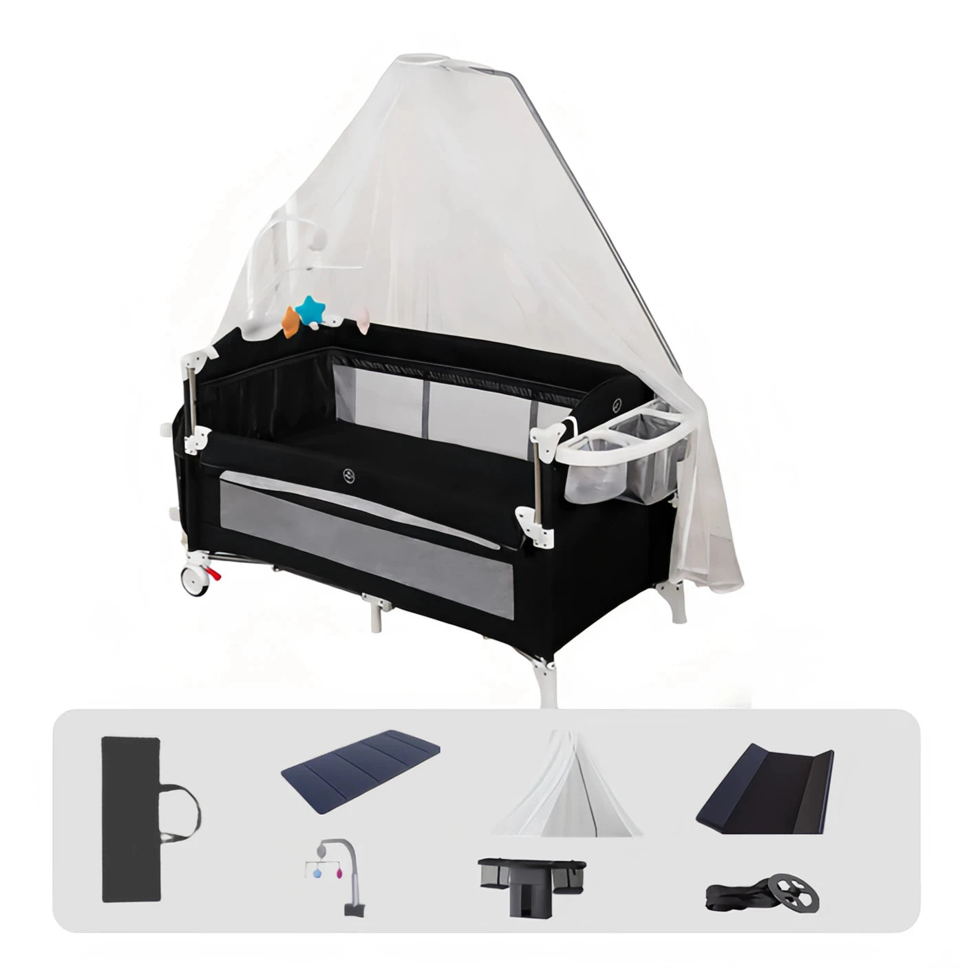 Baby Bed Foldable Baby Crib Portable Baby Crib Newborn Baby Crib Height-Adjustable Baby Crib Multifunctional Baby Crib Baby Crib with Safety Rails Bedside Sleeper Baby Crib Anti-Tip Baby Crib Home-Use Baby Crib Breathable Mat