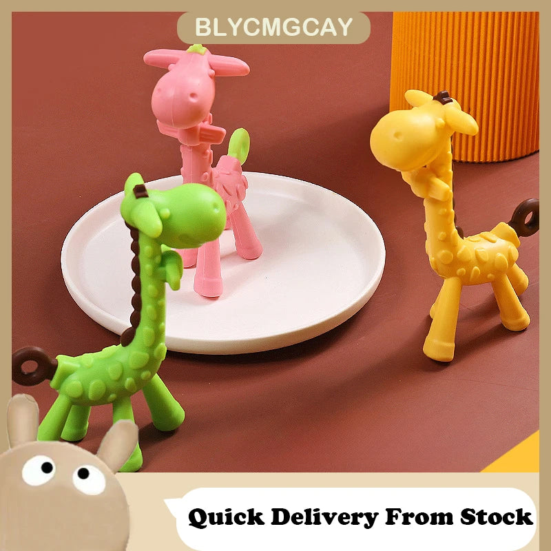 Baby Giraffe Tooth Gel Deer Neonatal Silicone Food Teether Grinding Stick Toy Baby Accessories